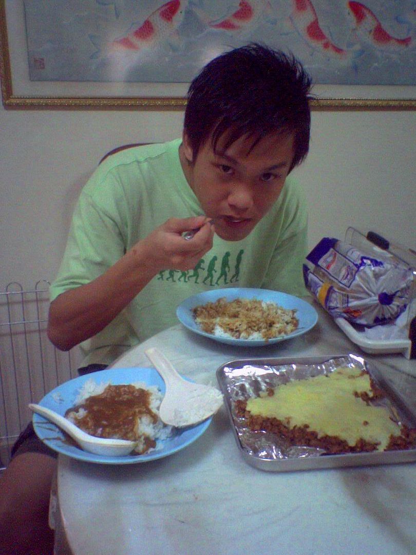 Today is cookin day! i finally have time to cook delicious dishes for my dearest precious xingan! I cook potato pie...=) and rice wif curry sauce. YumMy!
