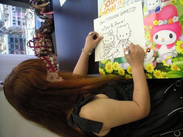 Ever wonder which cutie pie invented HELLO KITTY? hheee~ she is the legendary Hello Kitty designer, Ms. Yamaguchi Yuko. look sweet huh? see how well she can draw the hellokitty soo easily! the proportion is juz nice! i used to draw hellokitty and it either the face too round, eyes too small, nose too long.......bla bla.... dun tink it a easy task k! dun believe? try drawin it yourself!