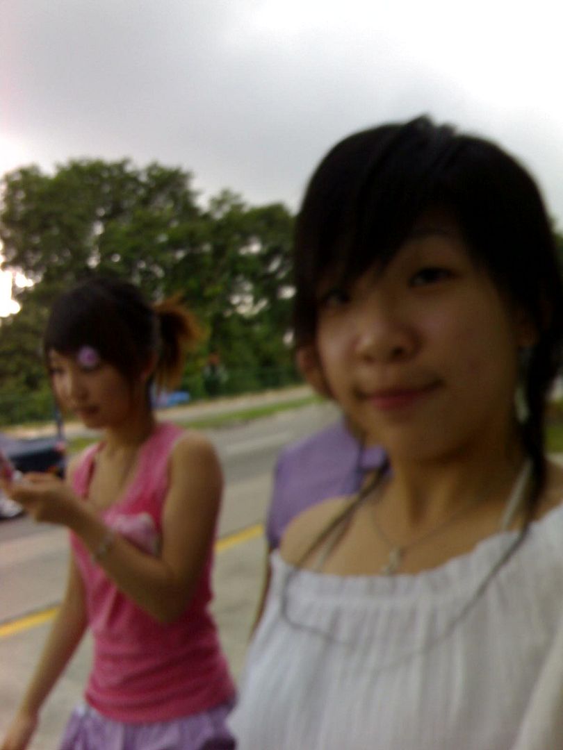 order by xinhui to pose a puppy look~ haha.. me and my butter look-alike face. =) btw i lurve flowers...laces...soooo sweet! and all the way back to school! can ya see me in the background? =pPpPp actually the photos i post up here is like onli 1/4 of the tons of photos taken on the actual day! so, ya...can see..we are photo freaks!!!! No1 photo-freak: Me and Xinhui.(no winner yet) lol. No3 photo-freak: Henghui. she is always the one admiring both of us being vain. HAHHAAHA. holiday is like 1+ week time? so excited!!